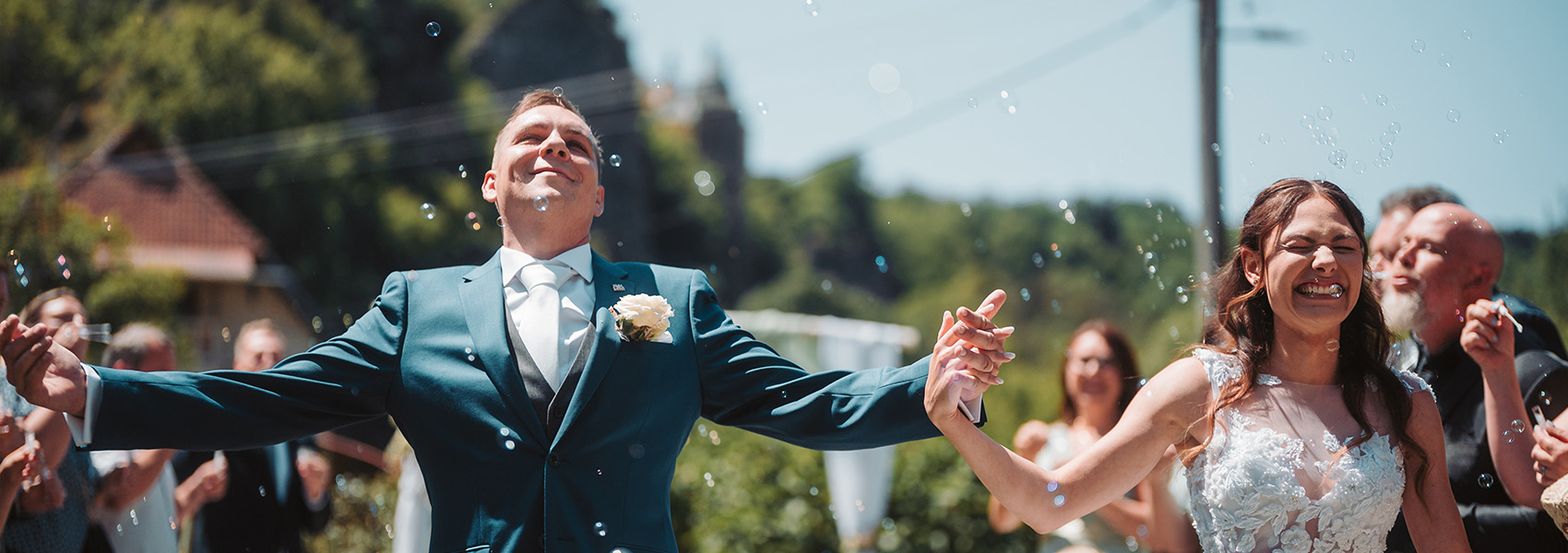 Romantická svatba s výhledem na Vranovský zámek nedaleko Znojma